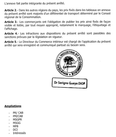 Cependant, le ministre Serigne Guèye Diop a tenu à mettre en garde les contrevenants à ce présent arrêté, dont les plus bruyants sont les meuniers qui refusent de se conformer à la nouvelle structuration des prix.