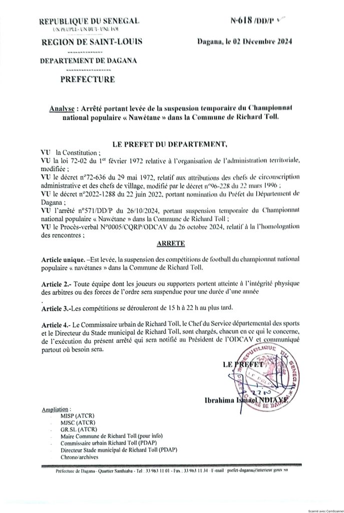 Richard Toll, Levée de la Suspension des Navétanes de Football : Un Nouveau Chapitre pour le Sport Local